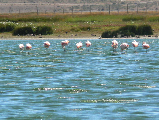 Der führte uns an den Rand von El Calafate, wo die Stadt ein kleines Reservat, das Reserva Ecológica Municipal Laguna Nimez unterhält. In den beiden Lagunen, die das Reservat umfasst, leben zahlreiche Vogelarten, zu denen und deren Lebensgewohnheiten es auf einer Art Naturlehrpfad jede Menge wissenswertes gibt. Beispielsweise leben hier Magellangänse, eine Gras fressende Entenart, die paarweise zusammen lebt.