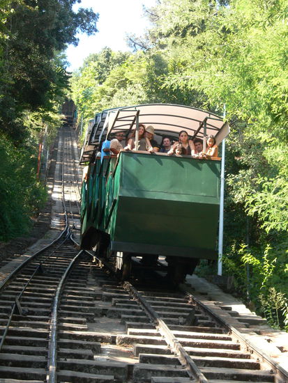 Eigentlich würde man nach unseren bisherigen Schilderung sicher erwarten, dass wir diesen Hausberg Santiagos zu Fuss erklommen hätten. Doch weit gefehlt. Denn auch wir sind von Natur aus faul, und wenn es Hilfsmittel gibt, dann nutzen wir die in der Regel auch. Das Hilfsmittel hier war eine Standseilbahn, Funicular auf spanisch.