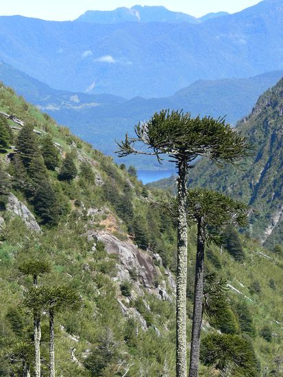 Eine letzte Erinnerung an den Park ist das Bild einer alleinstehenden Araucarie vor grandioser Kulisse: