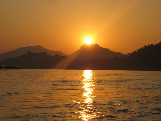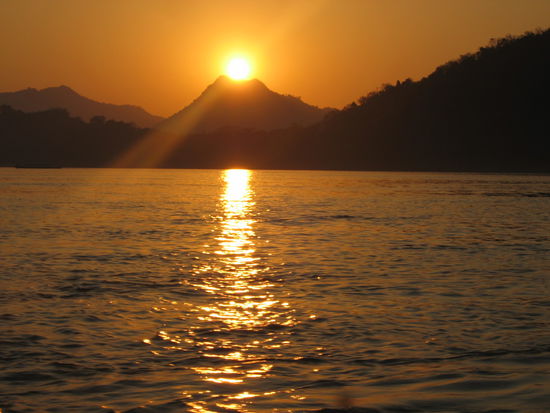 Das beste hier ist die Landschaft, die ist einfach atemberaubend schoen! Ein Ausflug mit dem Boot auf dem Mekong zu den beruehmten Buddha-Hoehlen (Pak Ou) war fuer mich der Hoehepunkt hier in Luang Prabang. Eine einmalige nahezu unberuehrte Natur, der Fluss - klasse! Und am Schluss dieser Sonnenuntergang...