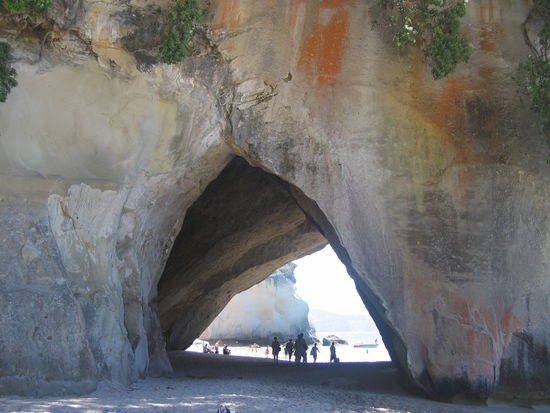 Nach dieser sehr anstrengenden Taetigkeit sind wir an die Cathedral Cove gefahren. Nach ca. 40 min Fussmarsch erreicht man einen wunderbaren (ja, wieder einmal!) Strand, durch einen Felsen in zwei Abschnitte getrennt. Durch diesen Durchgang kann man aber problemlos beide Abschnitte erreichen. Hier haben wir einige Zeit zum erholen in der Sonne gelegen.