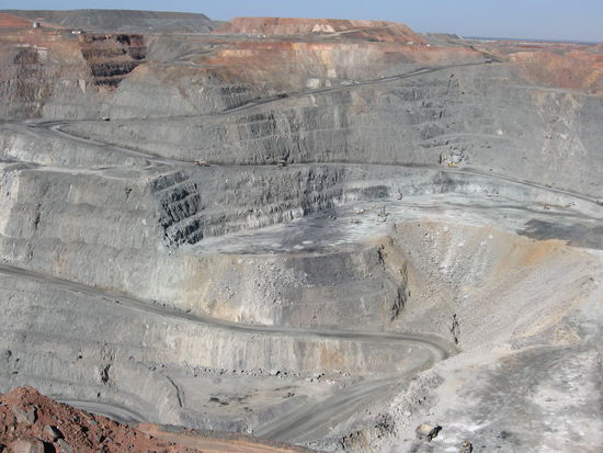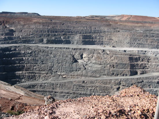Hier in Kalgoorlie befindet sich der groesste Tagebau Australiens, kurz "Superpit" (Riesenloch)genannt. Nachdem sich auf dem Areal zuerst mehrere kleinere Gesellschaften befunden haben, wurden diese zusammengelegt und das Superpit entstand. Zurzeit ist der Tagebau mehr als 3 km land, 1,5 km breit und etwa 330 Meter tief. Ein paar Eindruecke...