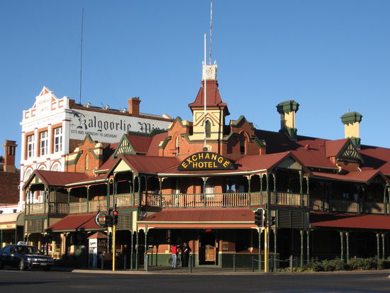 Irgendwie herrscht hier schon ein besonderer Flair. Die historischen Gebaeude in der Hannan Street, der Hauptstrasse hier in Kalgoorlie, und ein schoener Sonnenuntergang lassen einem in Gedankne die glorreiche und turbulente alte Zeit wieder auferstehen.