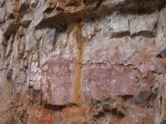 Immer wieder findet man hier in den Schluchten Wandmalereien der Aborigines. Nach vielen Jahren immer noch gut erhalten.