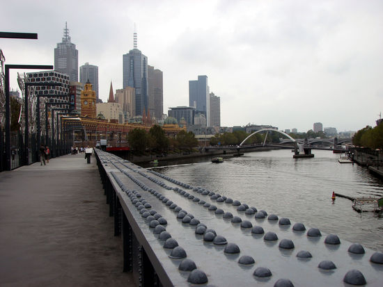 Melbourne City und im Vordergrund das rot/ orange Gebaeude ist der Bahnhof, der eigentlich in Mumbai stehen sollte, aber irgendwer vor ganz langer zeit die plaene ausgetauscht hat...klingt logisch...is aber so!!