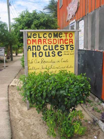 Eigentlich trafen wir Omar gleich, als wir aus dem Bus stiegen und er warb fuer sein Gaestehaus. Da wir aber erst einmal verwirrt umherliefen, fanden wir ihn erst kurze Zeit spaeter. Er fing uns sofort ab und erklaerte, SEINE Preise seien die BESTEN. Fuer 2 Doppelzimmer bezahlten wir je 25 Belize Dollar pro Nacht, was dann fuer jeden insgesamt fuer die 2 Naechte ca. 12 Euro waren. Also in Belize zu uebernachten ist WIRKLICH nicht teuer, da kann mir keiner was erzaehlen!