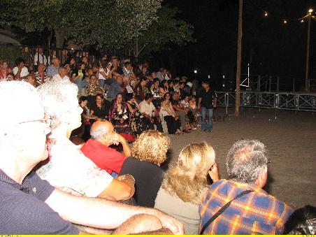 Gemeinsam mit den Italienern gehen wir zurück zum Kirchplatz, und warten auf der Treppe auf die Folkloretänze. Da wir den Italienern einen Platz freigehalten haben, bekommen wir auch noch dulce, denn eine der Damen hatte auf dem Weg zurück Torrone gekauft. Die Tänze von zwei Jugendgruppen und einer großen Erwachsenengruppe aus Siniscola schauen wir uns an und gegen 23.00 Uhr machen wir uns auf den Rückweg. Bandito, die junge Katze, will mit ins Haus und springt eine Yucca an, die prompt umfällt.