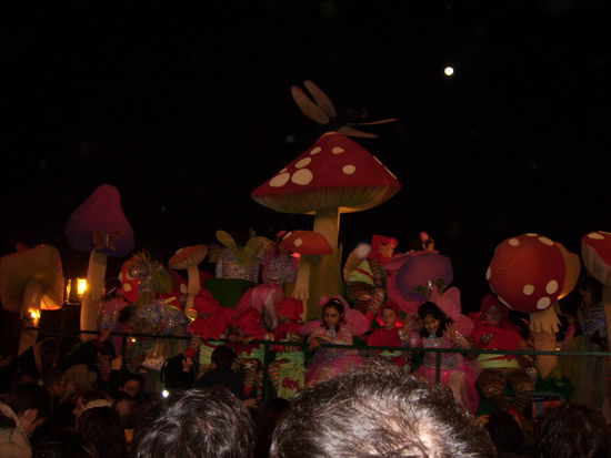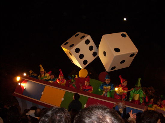Da Rafa dank neuer Freundin aufzutauen scheint, wurde ich eingeladen am 5. Januar mit seinen Freunden die Parade anzusehen. Wie an Karneval fahren dekorierte Wagen durch die Stadt. Der einzige Unterschied besteht darin, dass das Spektakel fuer Kinder ausgerichtet ist. So finden sich Themen aus Kindersendungen, Maerchen oder Harry Potter. Auch sind es hier die Kleinen, die auf den Wagen mitfahren und uns Erwahsene mit Bonbons beschmeissen.