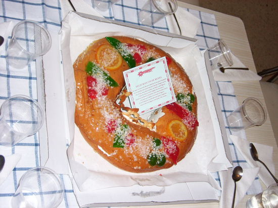 Am 6. Januar werden dann, wie bei uns zu Weihnachten, die Geschenke verteilt. Ausserdem wird ein wiederlich suesser Kuchen gegessen.
