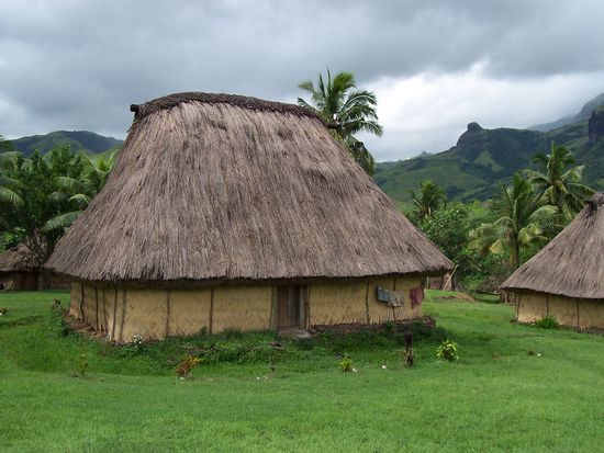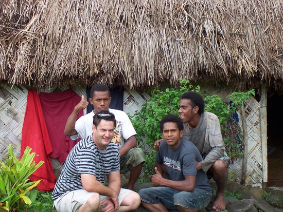 Nachdem wir den Lonely Planet etwas genauer gelesen haben, haben wir uns dafür einschieden am Donnerstag zuerst Richtung Norden zufahren. Erster Stop allerdings war ein Arzt, da Cliff auf irgendwas allergisch regiert hat und überall roten Ausschlag hatte. Als das erledigt war, war das Navala Village unser Ziel. Das ist ein kleines, traditionelles Dorf in den Nausori Highlands ca. 26km von der Küste entfernt an den Ba River gelegen. Für die Strecke dahin war es gut, dass wir den 4WD hatten. In Deutschland würde man die Strasse wahrscheinlich als schlechten Feldweg bezeichnen. Davon abgesehen mussten wir auch über den Fluss - ohne normale Brücke versteht sich. Wenn ich mich recht erinnere, steht das Dorf in der jetzigen Form seit ca. 20 Jahren und es leben 200 Leute dort. Für "Touristen" ist es interessant, weil alles in der traditionellen Bauweise errichtet wurde. Die Bures - so heissen die Hütten - sind komplett aus natürlichen Materialen wie Bambus gebaut. Das einige Gebäude aus Beton ist die Schule. Wir hatten unseren "persönlichen Führer" schon 2km vor dem Ort eine Mitfahrgelegenheit geboten. Wir wussten zwar, dass man eine kleine "Spende" geben muss, um Fotos machen zu dürfen, aber das kommt vermutlich darauf an wie gut man im verhandeln ist. Naja, da wir ja nicht umsonst die Strecke fahren wollten, haben wir eben die 25$ pro Person "Eintritt" gezahlt. Aber es war interessant auch die kulturelle Seite von Fiji kennen zu lernen. Man hat u.a. auch die Kirche und Schule gezeigt, sowie die Bure von unseren Führer.