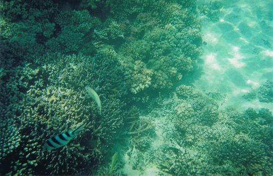 17.02.2008 Jetzt wundert ihr euch bestimmt warum ich noch ein neues Kapital anfange, wenn unsere Zeit auf Fiji fast schon um ist. Die Lösung dafür ist ganz einfach. In Momi Bay haben wir uns spontan für eine Island Hopping Tour am nächsten Tag entschieden, welche mit 85$ pro Person relativ günstig war. Das war wirklich schön. Um es etwas zusammen zu fassen...Nachdem unser Boot bzw. der Guide mit etwas Verspätung aufgetaucht ist, sind wir in Richtung der Mamanuca Group. Unser erster Stop war am Malolo Reef, wo wir schnorcheln waren. Und typisch ich - es ist ja ne ganze Weile her, als ich das letzte Mal schnorcheln war - hab anfangs natürlich wieder mit meiner Maske gekämpft. Was nichts anderes bedeutet, als jede Menge Salzwasser in Mund, Nase und Augen zu bekommen, was einen dazu zwingt in regelmässigen Abständen den Kopf hochzureißen, Wasser ausspucken und wieder von vorne anzufangen. Auch wenn es bei mir nicht so elegant wie bei Cliff aussieht, hab ich jede Menge kleine, bunte Fische gesehn. Danach sind wir weiter und haben eine Runde um Castaway Island gedreht. Auf Castaway Island wurden einige Scenen des Films "Castaway" mit 90% Tom Hanks gedreht. Der Grossteil wurde etwas weiter draussen auf Monuriki Island gefilmt Das Resort dort schaut ganz nett aus - das kann man nicht bestreiten - aber für Normalsterbliche ist es nur zum anschaun vom Boot. Man ist mit 700$ bis 1700$ pro Nacht dabei.