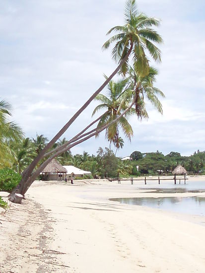 Anschliessend sind wir am Walu Beach (Malolo Island) an Land und hatten dort Lunch, einen Swimming Pool und einige Zeit zur Verfügung. Als unser Boot uns wieder abgeholt hat sind wir nach Plantation Island. Dort sind wir an einer Seite der Insel abgesetzt wurden und auf der anderen später wieder abgeholt. Der Spaziergang am Strand lang war echt herrlich und an jeder Ecke hat man dieses "typisch Fiji" Gefühl gehabt. Feiner Sandstrand, klares, blaues Wasser, Kokosnusspalmen, Hängematten und Sonnenschein. Wir hatten es gerade bis zu dem Resort, wo wir abgeholt wurden geschafft, als die graue Wand, die in der Entfernung zu sehen war, aufeinmal da war. Naja, da kann man machen nix. Aber zum Glück hat sich der Regen an die Regeln gehalten und nach ca. einer halben Stunden, in der es wie aus Eimern geschüttet hat, war es wieder vorbei. Wir konnten sogar noch mal vom Strand aus schnorchln gehen. Wahrscheinlich ist es nur meine Einstellung, aber es gibt mir irgendwo mehr Sicherheit, wenn ich weiss der Boden unter den Füssen ist nicht zu weit weg. Allerdings hat man wegen den Sturm, der ja gerade drüber gefegt war, und rechten vielen Booten, die das Wasser aufwühlen, nicht so viel gesehen.