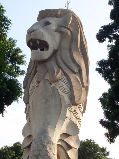 01.04.2008Das Highlight der Woche war für mich dann der letzte Tag. Denn da war ich auf Sentosa Island. Bis zum Schluss gewartet habe ich, weil ich irgendwo hoffte, dass wir beide zusammen hinkönnen, aber das hat zeitlich nicht funktioniert. Sentosa ist eine kleine (manmade) Insel im Süden. Sehr touristisch, aber trotzdem sehenswert, wenn man versucht die Bauarbeiten zu ignorieren. Dort bin ich zuerst den Carlsberg Skytower hoch und hab den Ausblick von oben genossen. Ok, wegen bereits niedrig stehender Sonne sind die Fotos nicht die besten. Bei guter Sicht - was bei mir leider nicht ganz der Fall war - kann man auf der einen Seite Indonesien und auf der anderen Malaysia sehen. Dem folgte ein gemütlicher Spaziergang über die Insel und am Strand entlang. Das sah schon alles sehr nett aus, aber trotzdem wäre ich dort nicht ins Wasser gegangen. Der Grund dafür ist einfach die Tatsache, dass Singapore auch das Zuhause von einen sehr grossen Hafen ist, und die Melacca Strait die meistbefahrenste Wasserstrasse weltweit...Resultat des ganzen ist, nen Kilometer vom Ufer weg reihen sich die Containerschiffe aneinander und das Wasser ist nicht wirklich sauber. Eine weitere Attraktion von Sentosa ist "Songs of the Sea". Das ist eine Licht - Laser - Show, in der eine Geschichte "erzählt" wird, wie ein junger Mann namens Li die Prinzessin Ami von einem Zauberspruch befreit. Ausserdem ist auf Sentosa der südlichste Punkt des asiatischen Festlandes. Aber der war wegen Bauarbeiten gerade gesperrt. Die Insel ist auch bekannt für ein Unterwasseraquarium, wo man u.a. Stingrays anfassen kann, sowie die Dolphin Lagoon, wo es die pinken Indo-Pacific Humpack Delfine zu bewundern gibt.