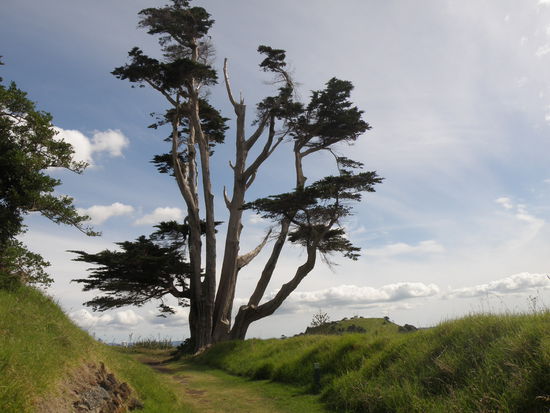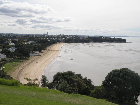 29.03.2009 Nachdem ich ein paar Tage einfach faul war und nix weiter erwähnenswertes getan hab, war ich gestern wieder etwas aktiv. Mit der Fähre bin ich nach Devenport rüber - quasi einmal übers Wasser an die gegenüberliegende Seite von Auckland City. Obwohl nur wenige Kilometer von der City entfernt ist der Vorort um vieles ruhiger und hat wesentlich mehr Natur zu bieten. Die empfohlene Walking Tour geht via Victoria Road zum Mount Victoria, weiter zum Cheltenham Beach und North Head, bevor es wieder am Wasser entlang zurück Richtung Fähre geht. Mount Victoria and North Head sind beides - wie solls auch anders sein - alte Vulkane und man hat einen Superausblick von oben. Oben angekommen musste ich mich erst mal ne Runde hinsetzen und ausruhen...jaja, wie die alten Leute. Mt Victoria's Anstieg ist zwar nicht sehr lang dafür aber ganz schön steil und anstrengend, zu Fuss jedenfalls.