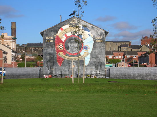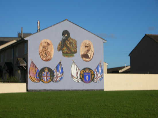 Hier wohnen nur Leute, die wollen, dass Nordirland Teil Großbritanniens bleibt und die deswegen auch die terroristischen Vereinigungen unterstützen, die dafür kämpfen. Man läuft umher und fühlt sich wirklich sehr unwohl, zumal auf dem einen Mural ein Scharfschütze abgebildet ist, der die ganze Zeit mit seinem Gewehr genau auf einen zu zielen scheint ("Die nordirische Antwort auf die Mona Lisa", meinte unser Fahrer).