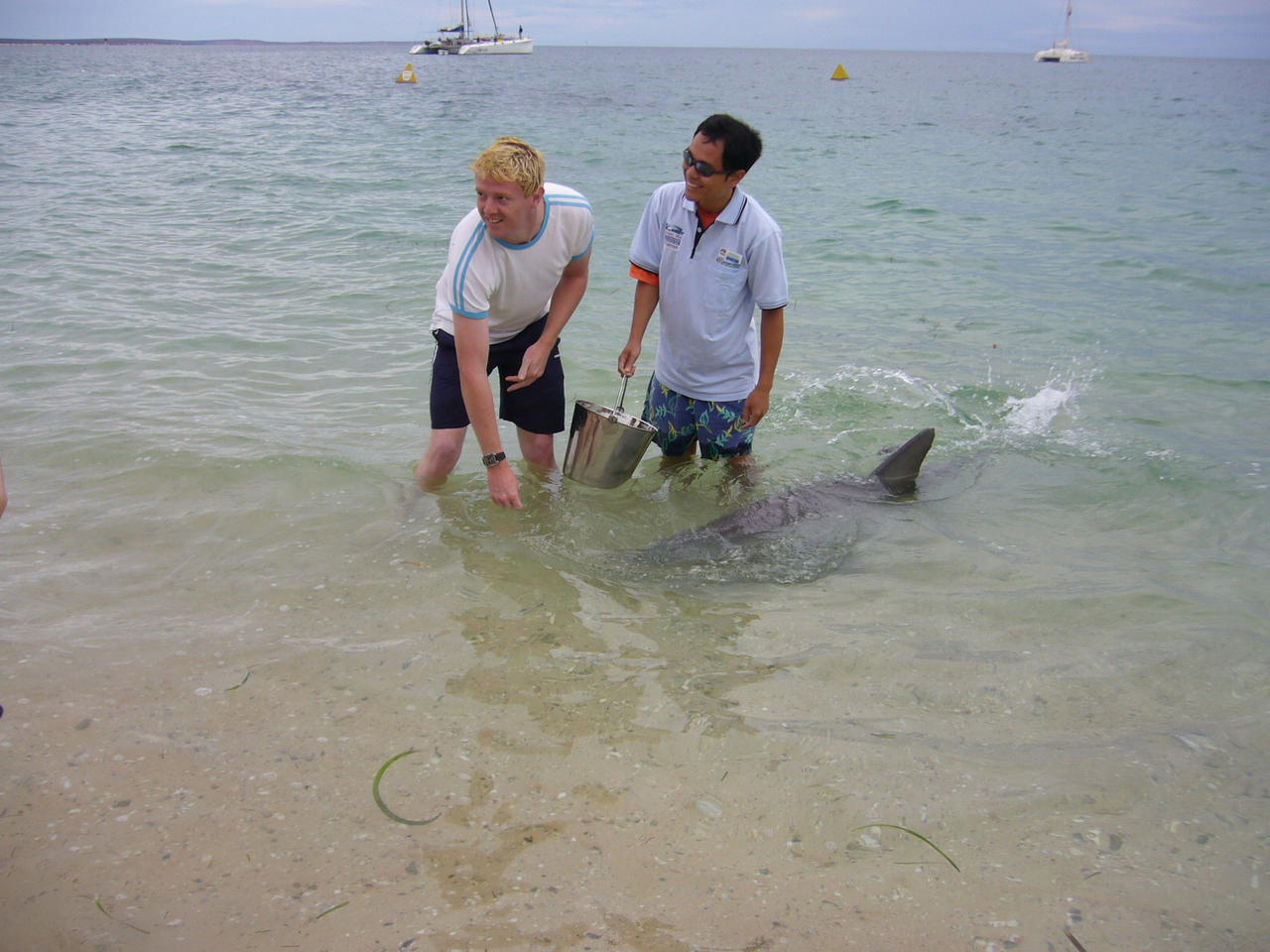 Am Mittwoch Morgen liessen wir uns die Delphinfuetterung in Monkey Mia nicht entgehen. Danach sassen wir nur im Bus, um Coral Bay und das Ningaloo Reef zu erreichen, wo wir nachher noch schnorcheln gehen werden.