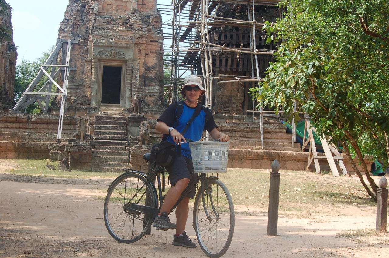 Die Fortbewegung mit dem Rad, die Strassen sind gut in Schuss, ist wirklich einfach, man muss kein Totschnig sein um von einem Ort zum anderen zu gelangen. Sicher setzen einem die heiss schwülen Temperaturen zu und man hat am Ende eines Tages durchaus seine 40 - 50 km, oder mehr abgespult, doch merkt man schnell, dass man viel mehr, als auf dem Rücksitz eines Mopeds oder Autos, entdecken kann. Hinzu kommt noch, dass die grossflächigen Tempel nicht mit dem Rad durchquert werden dürfen und somit der eine oder andere Hatscher nicht ausbleibt. Zusätzlich kann man bei vielen Tempeln ziemlich weit hinaufklettern, kleine witzige Stiegenkonsturktionen sorgen für einen gewissen Nervenkitzel, somit kann durchaus von sportlicher Betätigung und jede Menge Schweiss ausgehen. Ich kann jedem nur empfehlen nicht nur die Haupttempel zu besuchen, denn auf den schmalen Pfaden zu manch kleinem, oft auch recht verwittertem und baufälligen, Konstrukt kann man eine prächtige, leuchtend grüne und endlos weite Landschaft geniessen und sei es nur um den unvorstellbaren Touristenmassen auszuweichen.