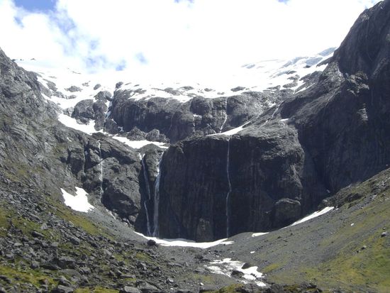 Aufgrund mangelnder Fitness musste der geplante Routeburn Track (3 Tages-Great-Walk) leider ausfallen. Aber auch per Auto und Boot ist das Fiordland spektakulaer! Die Strasse nach Milford Sound schlaengelt sich etwa 120 km durch tiefe Taeler. Ringsum sieht man Wasserfaelle, schneebedeckte Berge und den ein oder anderen Gletscher. Sobald man einen Rastplatz aufsucht wird man von den frechen Kea's umringt, Neuseelands grossen Hochgebirgspapageien.