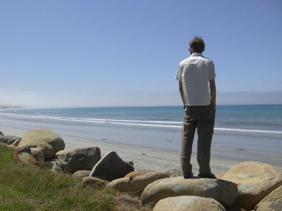 Zunaechst haben wir ein paar Tage die einsame Catlins Coast erkundet. Hier kann man stundenlang durch unberuehrten Regenwald spazieren oder an den endlosen Straenden relaxen.