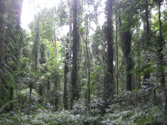 Nach ein paar Surftagen ging es weiter ins Inland in den Dorigo National Park. Der Regenwald ist hier voellig unberuhert und man kann sehr seltene Voegel, Echsen und einige Wallabies beobachten.