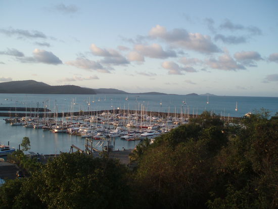 Der Ort Airlie Beach ist das Tor zu den Whitsundays Islands und fast jeder, der sie besuchen will, macht hier Station. Dem entsprechend reiht sich im Zentrum Souvernirshop an Souvenirshop und Hostel an Hostel. Ich wohnte jedoch diesmal nicht in einem Hostel sondern in einem etwas teureren "Resort", denn für Neujahr hatte ich hier einfach nichts mehr kriegen können. Die Anlage befand sich ein wenig außerhalb des Ortes. Hier zeigte sich bereits eine andere Seite der Region: Man hatte einen wunderschönen Blick über den Hafen und die nächstgelegenen Inseln. Wenn man sich also die Zeit nimmt, sich auch im Ort etwas mehr umzusehen, so zeigt sich, dass auch Airlie Beach selbst einen Besuch wert ist!