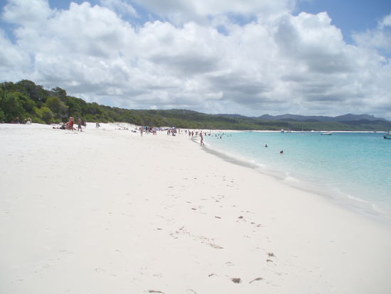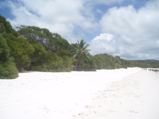 Wie man auf den Fotos sieht, macht der Strand seinem Namen wahrhaft alle Ehre, denn der Sand ist wirklich unglaublich weiß. Dennoch muss ich sagen, dass ich in Australien viele andere Strände gesehen habe, die ich schöner fand, und die noch dazu viel weniger vermarktet und somit viel einsamer waren.