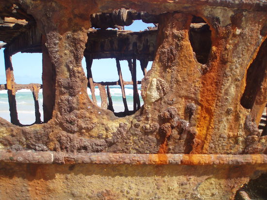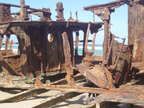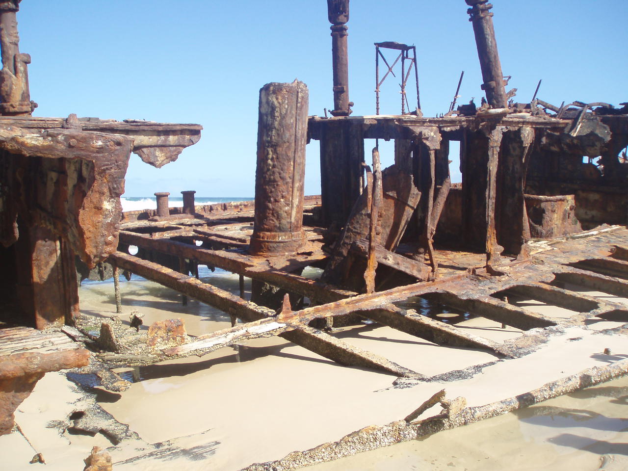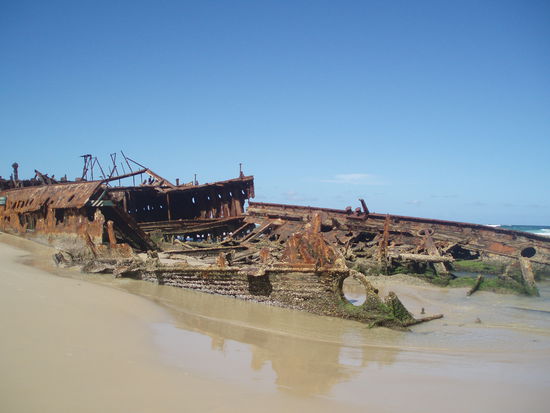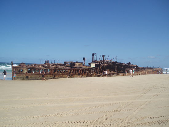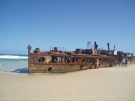 Die Maheno war vor dem ersten Weltkrieg ein sehr schnelles Passagierschiff, das von Neuseeland nach Sydney fuhr und für diese Strecke den Geschwindigkeitsrekord hielt. Im ersten Weltkrieg wurde sie dann als Lazarettboot eingesetzt und konnte ungehindert verletzte Soldaten transportieren, denn kein feindliches Schiff konnte sie einholen. Mit der Zeit jedoch gab es dann schnellere Schiffe und die Technik der Maheno veralterte. 1935 sollte sie daher auf einen japanischen Schiffsfriedhof geschleppt werden. Auf dem Weg jedoch kam unerwartet ein Zyklon. Das Seil, das die Maheno an das Schlepperschiff band, riss und die Maheno wurde an den Seventy Five Mile Beach gespült.