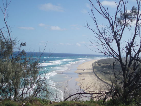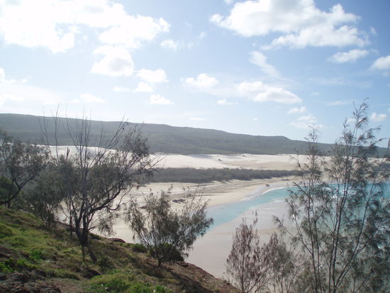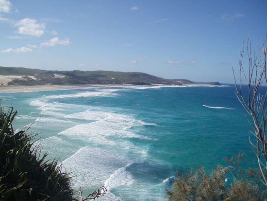 Fraser Island ist eigentlich eine gigantische Sandbank, die 120 km lang und 15 km breit ist, die größte Sandinsel der Welt. Sie entstand in tausenden von Jahren durch die Brandungsströmung. Hier findet man Regenwälder und fast 200 Süßwasserseen. Kein Wunder, dass die Aborigines vom Stamm der Butchulla sie "K'gari" nannten, was "Paradies" bedeutet. Die Insel wurde von den Europäern nach dem Kapitän James Fraser und seiner Frau benannt, die 1835 an der Westküste von Fraser Island Schiffbruch erlitten. Die Frau konnte mit Hilfe der Aborigines überleben.