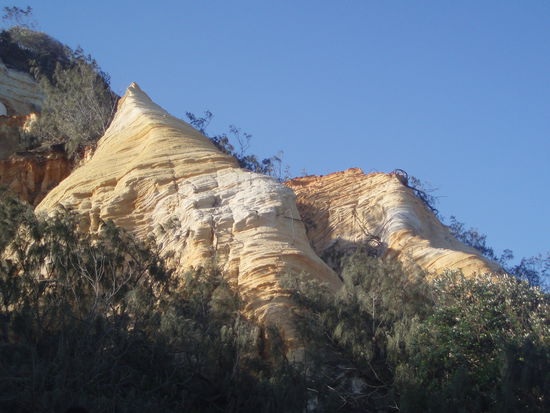 Als letztes hielten wir auf dem Weg zurück ins Resort an den Coloured Sands, die ähnlich wie diejenigen in Rainbow Beach aussahen. Sie werden auch "The Pinnacles" genannt. Im Sonnenlicht des späten Nachmittags sahen sie wunderschön aus.