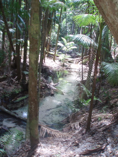 Wir wanderten am schönen Wanggoolba Creek entlang durch den Wald bis zum Lake McKenzie. Das Wasser des Creeks ist so rein, dass es sich hervorragend als Trinkwasser eignet (was wir auch ausprobierten!), und es sieht auf den Fotos fast durchsichtig aus! Wie auch Eli Creek wird der Wanggoolba Creek von einer Süßwasserquelle gespeist.