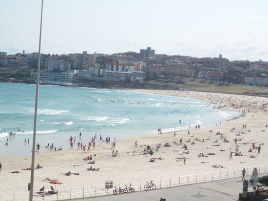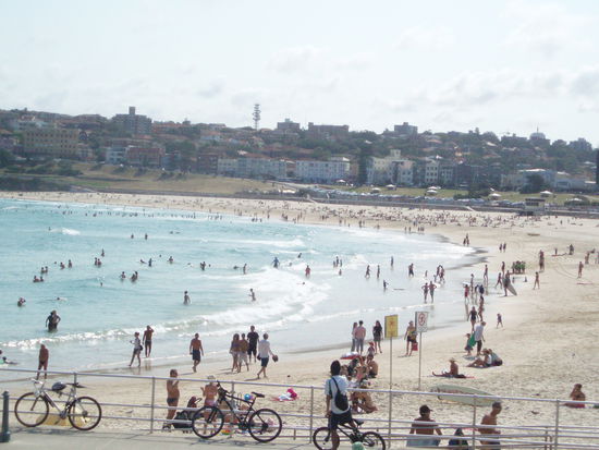 Bondi Beach ist wohl einer der berühmtesten Strände Australiens und auf jeden Fall der In-Strand Sydneys. Als Backpacker muss man natürlich einmal dort vorbeischauen. Jedoch fand ich ihn nicht halb so gut wie der Ruf, der ihm vorauseilt, trotz schönen Sandes und blauen Meeres. Dies lag hauptsächlich daran, dass es so voll war und an der Bebauung rundherum. Trotzdem bleibt natürlich eine gewisse Faszination: Ich war wirklich am berühmten Bondi Beach! Für viele Bewohner Sydneys und Touristen bleibt dieser Strand eben das Nonplusultra - man sollte sich also einfach selbst ein Bild machen.