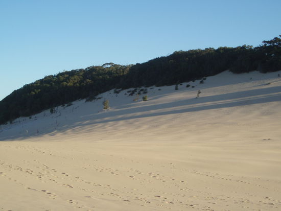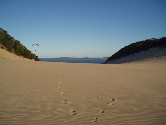 Am späten Nachmittag machte ich mich auf zur Carlo Sandblow, einer fantastischen Sanddüne, von der man einen atemberaubenden Ausblick auf die Wide Bay hat. Schon der Weg dorthin gefiel mir wahnsinnig gut, er führte durch ein kleines Stück Regenwald. Ich war fasziniert von der Natur. Die Bäume, die vielen fremden Vogelstimmen, die Düfte...