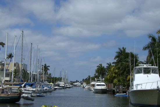 Nachdem wir in einem Einkaufszentrum eine Kleinigkeit zum Essen und Trinken eingekauft haben, ging es weiter nach Fort Lauderdale, das 'Venedig Amerikas'. Diesen Beinamen hat Fort Lauderdale, weil es eine Stadt mit zahlreichen Kanälen und Flüssen ist, ca. 480 km Wasserwege. Es gibt hier wohl kaum einen Hausbesitzer, der neben einem Auto nicht auch ein Boot (oder Yacht) besitzt. So viele Yachten haben wir selten auf einem Haufen gesehen.