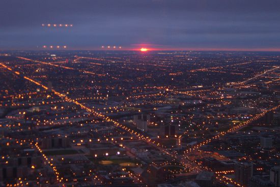 Gegen 17 Uhr sind wir mit dem Auto noch einmal nach Chicago Downtown gefahren, um den Sonnenuntergang vom Hancock Tower zu sehen und nochmals die Aussicht von diesem Gebäude zu genießen.