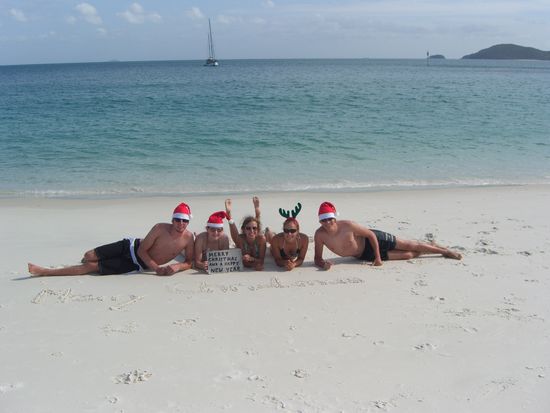 Whitsunday Island! Ein weiters unvergessliches Erlebnis.Letztes Wochenende ist unsere 3-taegige Segeltour gestartet!Haben es uns erstmal richtig gut gehen lassen.Konnten auf dem Schiff relaxen und wurden abends richtig lecker bekocht,waehrend wir die Sonne langsam am Horizont untergehen sehen konnten.Ganz frueh am naechsten Morgen kamen wir dann am Whiteheaven Beach an.Einfach unbeschreiblich.Der Sand ist so weiss, dass man ohne Sonnenbrille gar nichts sehen kann,weil man so geblendet wird. Und davor erstreckt sich dann der strahlend blaue Ozean.Als waere man im Paradies gelandet.Haette vorher nie damit gerechnet,dass ich einmal so ein Glueck haben werde so etwas schoenes zu sehen. An diesem Tag kamen wir aber aus dem Staunen gar nicht mehr heraus.Nachmittags hatten wir dann noch die Gelegenheit an 2 Stellen am Great Barrier Reef zu schnorcheln.Hatte vorher etwas bedenken ob das so das Richtige fuer mich ist.Mit Fischen hab ich es ja eigentlich nicht so.Aber wenn man einmal unter Wasser ist vergisst man einfach alles! Hab glaub ich noch nie so viele Farben und schoene Fische auf einmal gesehen. Ausklingen lassen haben wir den genialen Tag dann mit den witzigsten Trinkspielen die ich je gespielt habe. Am letzten Tag konnten wir dann noch ein letztes Mal schnorcheln,um dann super gluecklicih nach Airlie Beach zurueck zu fahren.In Airlie Beach angekommen haben wir noch mal so richtig Weihnachten gefeiert mit Gilad und Eyal( 2 super coole Israelis) und Dennis ( ein mega lustiger Deutscher).