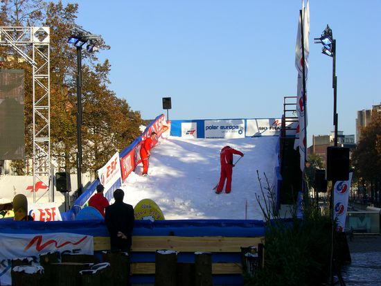 Als wir aus der Metro ausgestiegen sind dachten wir zuerst wir sind im falschen Film, weil plötzlich eine Schneerampe vor uns stand! Daweil war an diesem Wochenende einfach eine Art Reisemesse outdoor, mit Schnee und Christbäumen.