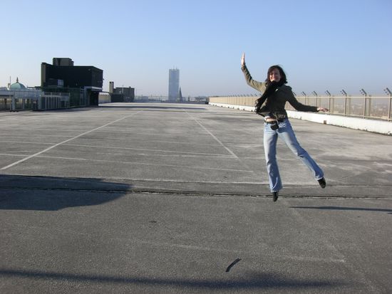 Im Parkhaus sind wir einfach ganz selbstverständlich in den 9. Stock gefahren. Dort war Gott sei Dank nix los, und da ist uns eingefallen wir könnten doch mal andere Fotos machen...sind gut geworden oder? *;o)