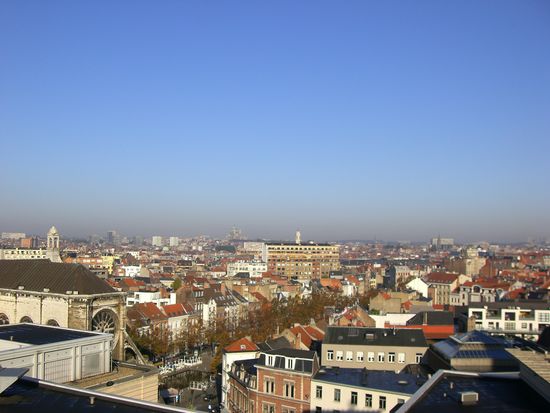 ...und sind spontan zur Eglise St. Catherine gefahren. Die Kirche an sich ist auch recht schön, aber was uns dort interessierte war ein Parkhaus, von dem aus man angeblich einen tollen Blick über Brüssel hat! (Der Tipp stammt wieder aus meinem Jugend-Reiseführer)