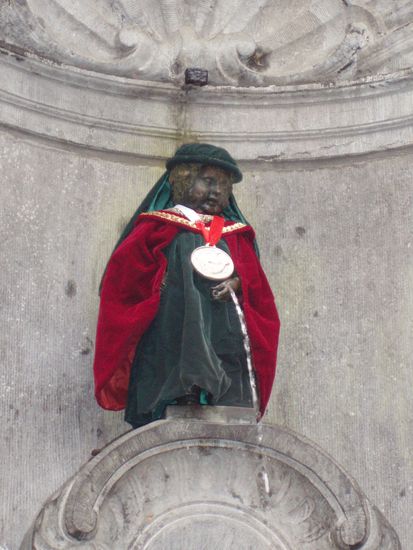 Was schaut man in Brüssel als erstes an, natürlich Manneken Pis! Diesmal hatte ich Glück, es war das erste Mal das ich ihn angezogen gesehen habe! Es war Jahrestag der Entdeckung Amerikas und daher war er als Christoph Columbus verkleidet!