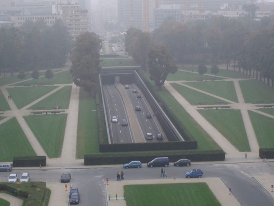 Am witzigsten an der ganzen (vernebelten) Aussicht fand ich die Autobahn mitten im Park! Das war mir von unten noch nie aufgefallen, da ist eine Hecke rundherum und der Lärm ist nicht so arg. Find ich eine super Idee!