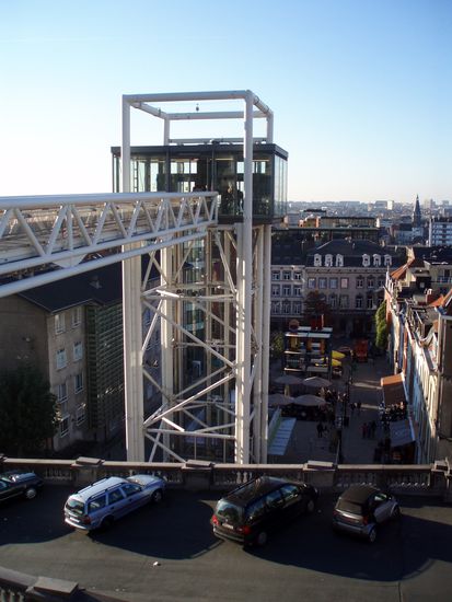 Später waren wir noch beim Justizpalast, weil man von dort eine tolle Aussicht auf Brüssel hat. Außerdem führt ein Lift vom Platz vorm Palast hinunter in die Marollen, eine Art Armenviertel in Brüssel wo man eben sieht wie die Arbeiter auch früher dort gelebt haben.