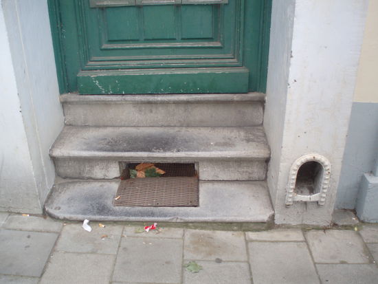 So, und diese Woche hab ich ein Rätsel für euch!! Neben den Türen von den alten belgischen Häusern gibts immer ein Loch, manchmal ganz schlicht, manchmal schön verziert, manchmal mit Bügel...aber es ist immer da! Wozu ist das gut? Wers richtig errät bekommt eine Postkarte! *;o)