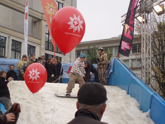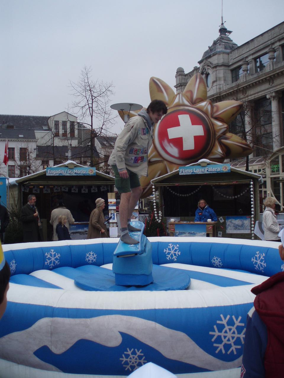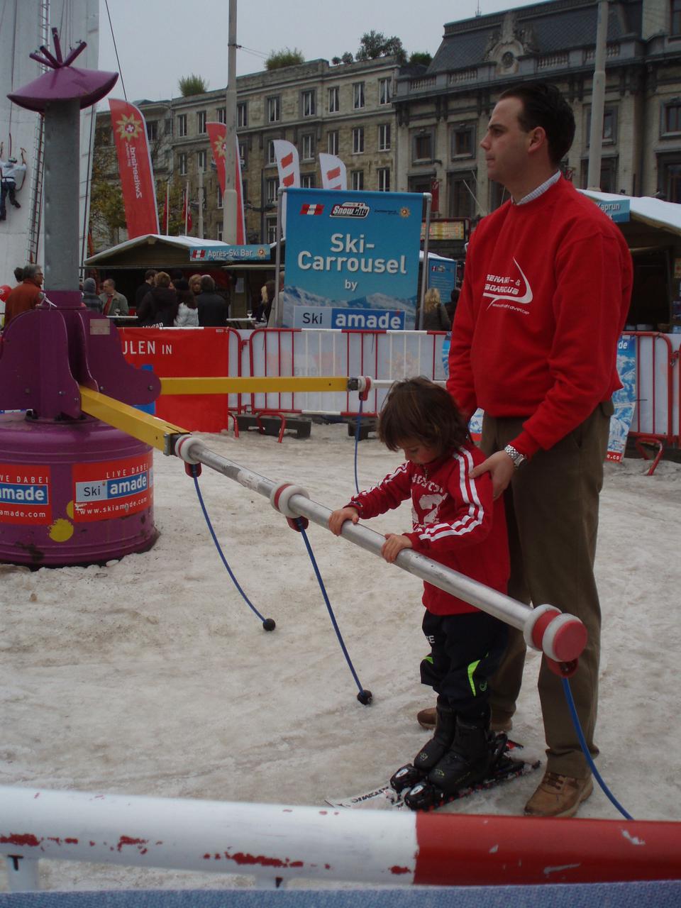 Samstag war dann auch sehr österreichisch!! Der Tourismusverband Österreich hat ein Event in Antwerpen organisiert, "Snowcity". In Belgien schneits so gut wie nie, also haben sie dort Schnee hingeschafft, es gab dann einen Hügel (so 2 Meter zu fahren *;o)), aber mit einer Snowboardrail, also richtig cool! Und für die Kinder so ein Skicarousel, wo sie im Kreis fahren konnten. Und einen Snowboardsimulator, das war ja überhaupt das blödeste, aber ganz lustig zum zuschauen!