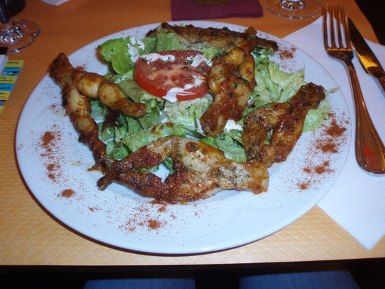 Am Weg zum Eiffelturm waren wir noch Essen. Und da wir ja immer gerne Sachen ausprobieren haben wir eine französische Spezialität ausprobiert: Cuisses de grenouille - Froschschenkel! Schmeckt besser als es ausschaut und klingt *;o) Und ist lustig zu essen, wie Hühnchen, nur mit winzigen Knochen!