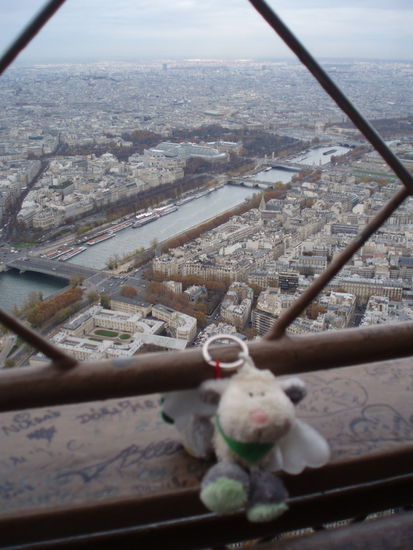 Dagmar weil ich den James ja leider nicht mit hatte hab ich den Schutzengel mit nach Paris genommen! Er war natürlich auch am Eiffelturm und heißt seitdem Guillome! *;o)