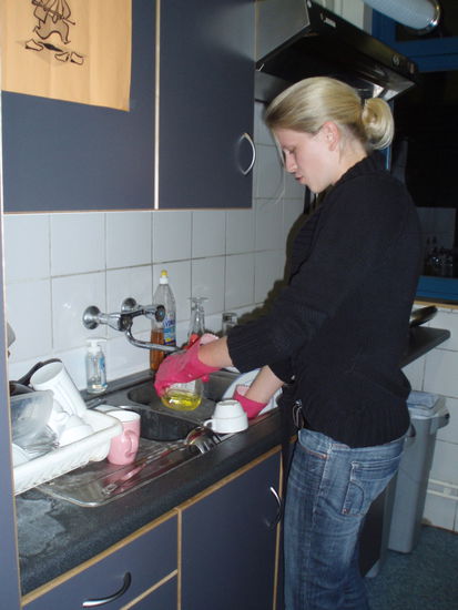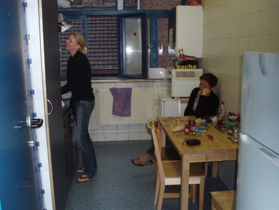 Da Brüssel eine richtig teure Stadt ist (Spenden werden gerne angenommen, Kontonummer auf Anfrage erhältlich! *;o)), und Babsi+Lilly arme Studenten sind, haben wir am zweiten Abend ganz traditionell gekocht! Die Küche im Hostel (also in "meinem" Teil für die long-stays) ist auch ganz gut ausgerüstet, mit der Hygiene habens einige Mitbewohner halt nicht so, aber Babsi hat gleich mal alles desinfiziert, also die nächsten Wochen bin ich vor Bakterien sicher! *;o)