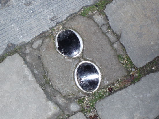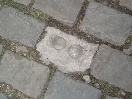 Vielleicht kann sich noch wer erinnern, ich hab schon einmal bei St. Katherine so eine Brille statt einem Pflasterstein gefunden! Mittlerweile haben Maria und ich schon mehr gefunden...eine bei Congres, udn noch eine beim Triumphbogen...warum? keine Ahnung! Max meint ev war Elton John mal da? *;o)