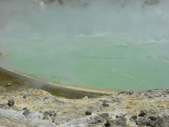 In dieser Thermalzone findet man buntgefaerbte Felsen und Seen,die wir auf unserm Rundgang durch das "duftende" Gelaende bestaunen konnten.