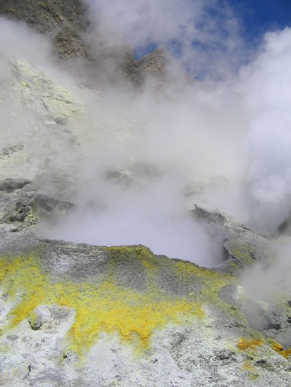 Das fand ich mal richtig gut,mit gelbem Helm und Gasmaske bewaffnet wurden wir am Standort einer alten Schwefelfabrik mit der Hoffnung,dass er nicht ausbricht,von dem Schlauchboot abgesetzt.