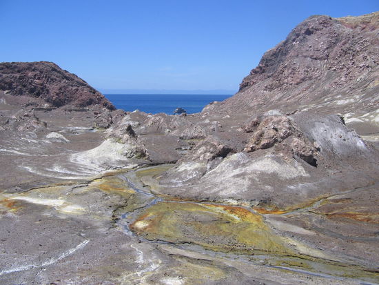 Mit dem Boot gings zu dem immernoch aktiven Vulkan,welcher vor der Kueste von Whakatane auf seiner Insel brodelt.